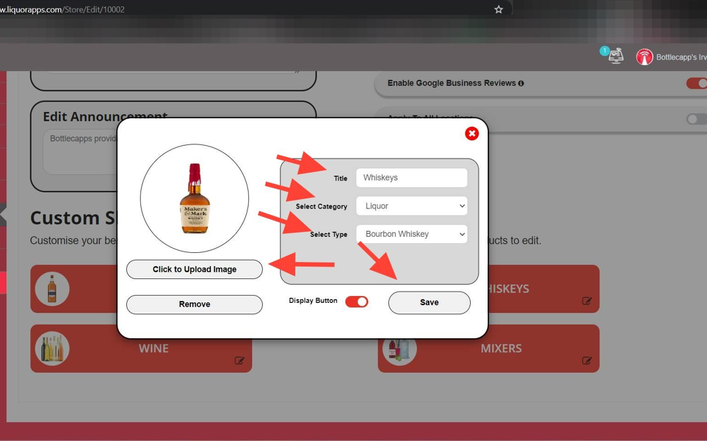 3. Click the shop button you want to edit from the choices shown in red (Beer, Spirits, Wine, or Mixers):