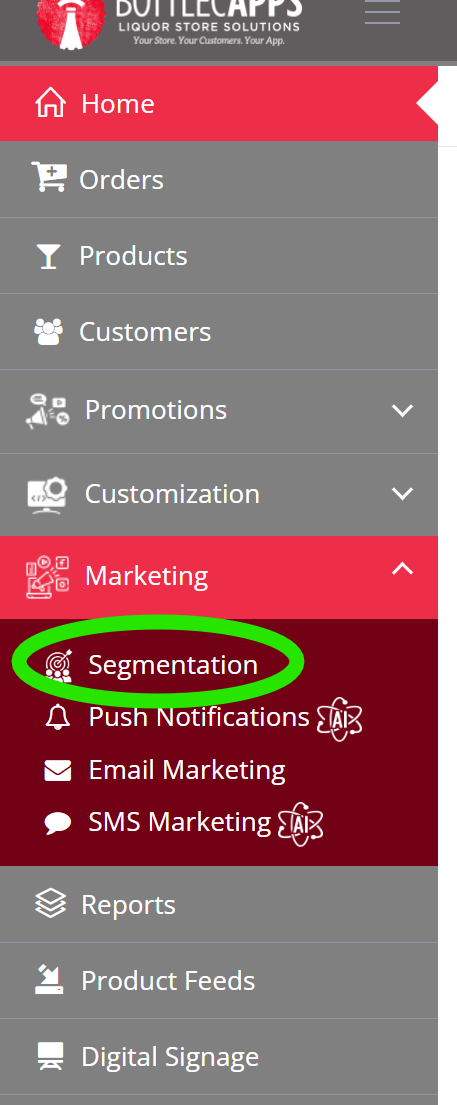 First, click the SEGMENTATION tab on the menu in the webconsole (liquorapps.com).