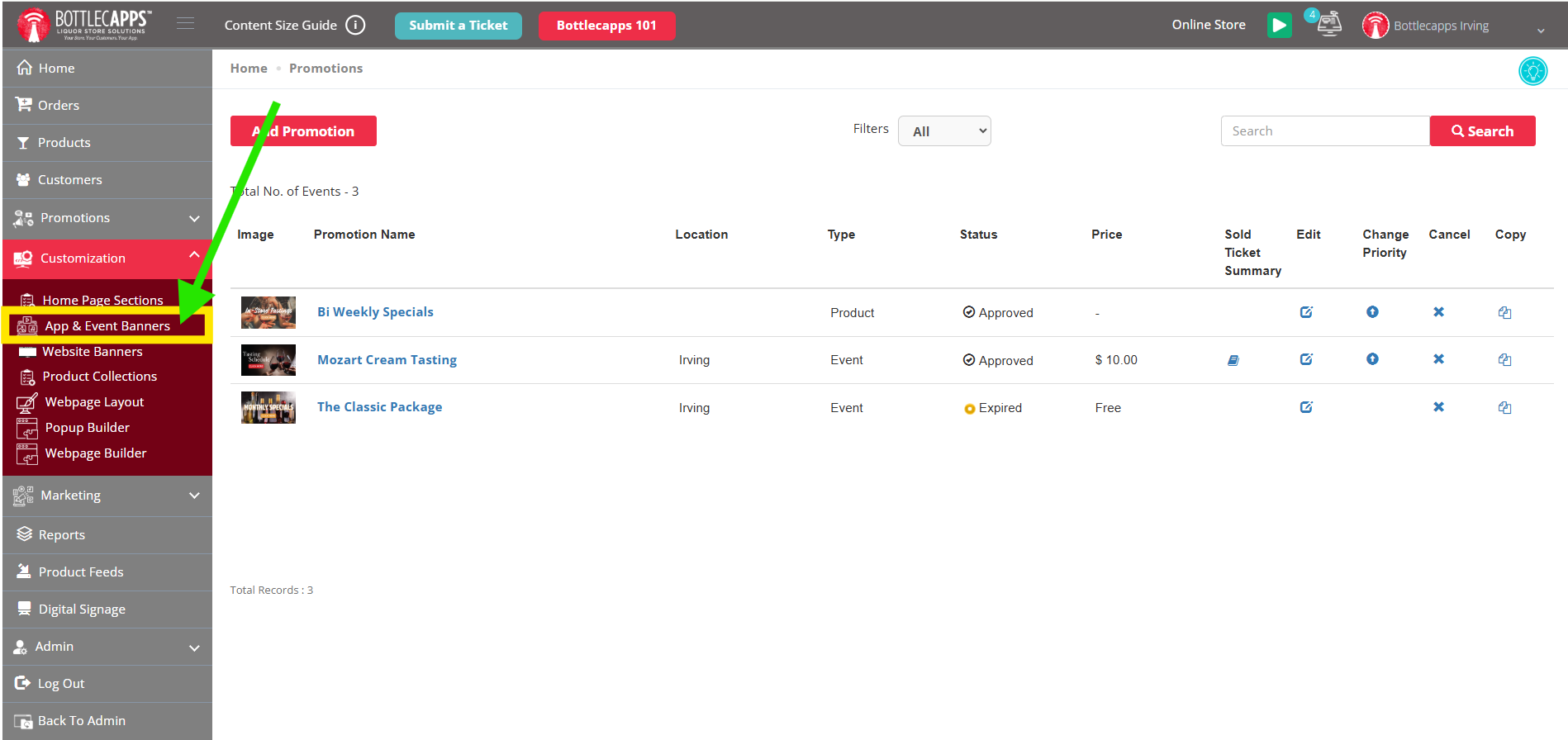 To set this up, click the Customization tab > App & Event Banners and click “Add Promotion” ...