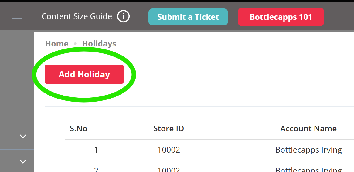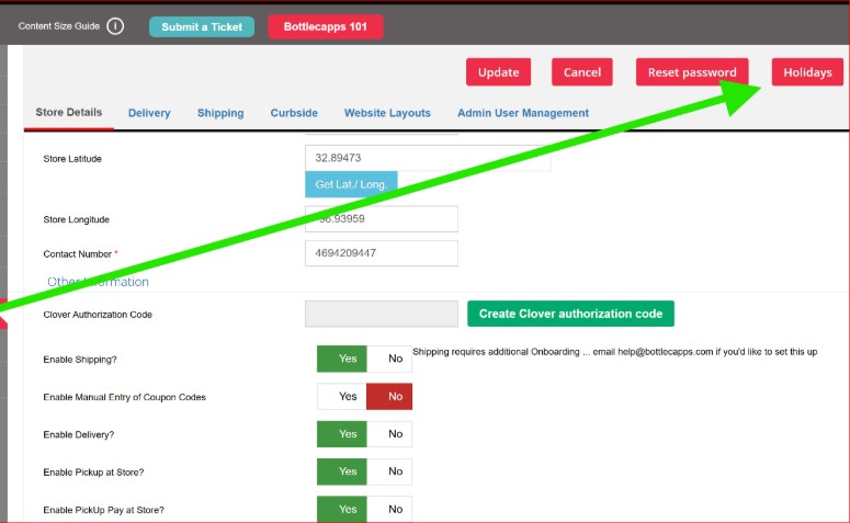 In the instance where you want to change the order settings for specific holidays, the HOLIDAYS button in your Webconsole can allow you to do just that. You can disable Pickup, Delivery, or Both for any given day you choose.