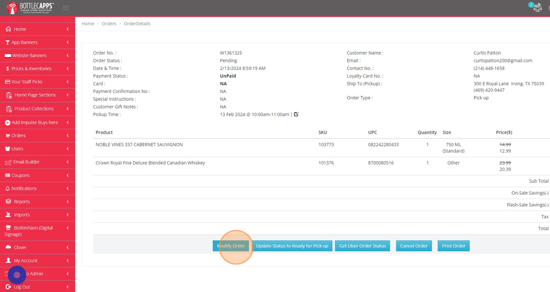 4. Click "Modify Order"