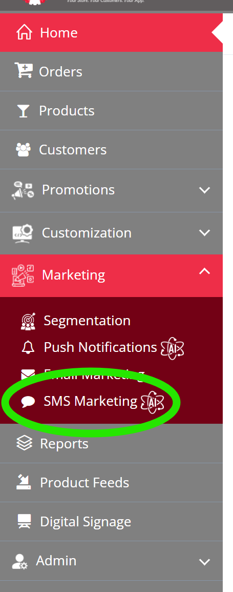 Here’s how to set SMS Messaging up. First, open your Webconsole (liquorapps.com) and click the tab that says SMS MARKETING on the left-hand menu ...