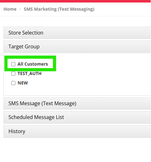 Target Group – To send to all customers that have Opted-In, click All Customers