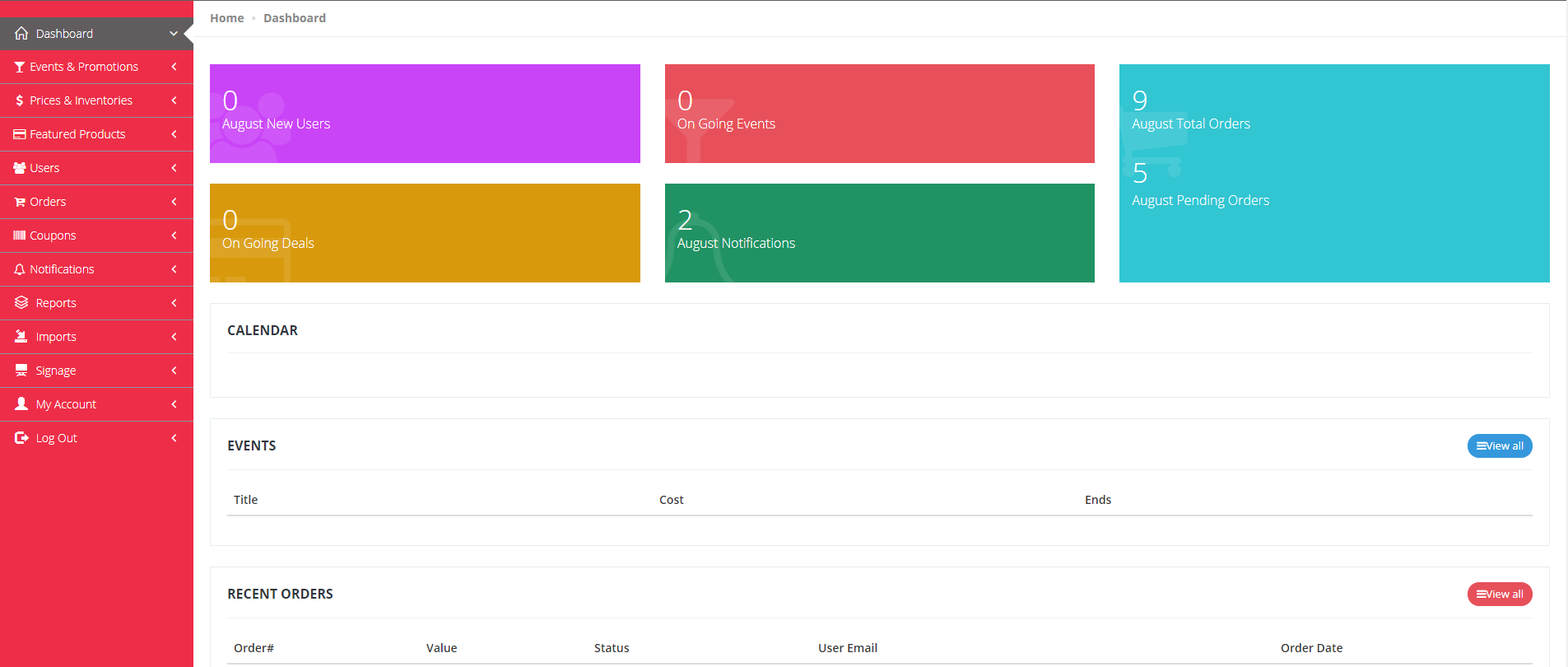 6. Events: All active events will be displayed here. Clicking the View All button will bring up the Events & Promotions tab.